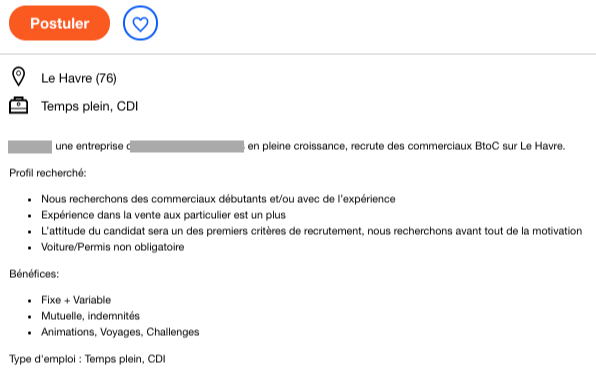 - Absence de contexte pour l'offre : création de poste, remplacement ou développement de l'entreprise ? Ces précisions sont inexistantes.
