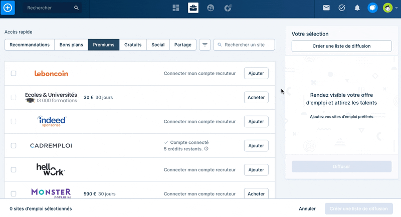 - Diffuser vos offres d'emploi automatiquement sur les sites d'emploi.
