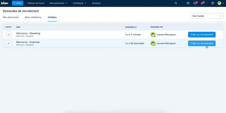 Enfin, l’intégration directe avec l’ATS Taleez simplifie encore plus le processus. Une fois la demande validée, elle est immédiatement disponible pour lancer le recrutement, sans ressaisie. Et avec l’évolution continue du module, l’automatisation va encore s’améliorer, ce qui va optimiser davantage notre gestion des recrutements.