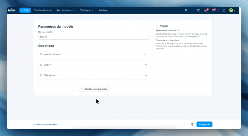 Ces formulaires personnalisés me permettent de qualifier rapidement les candidatures et de gagner du temps dès le début du process.